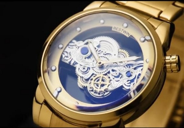 BESTWIN Brand Gear Watch Transparent Fashion Business Waterproof, Quartz Men's Watch